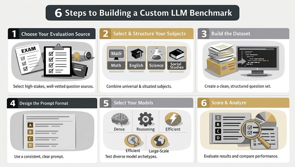 But the framework applies to any domain. Medical licensing exams. Legal bar questions. Industry-specific certifications. Internal company assessments. If you have a corpus of questions with known correct answers that represent your use case, you can build an eval.