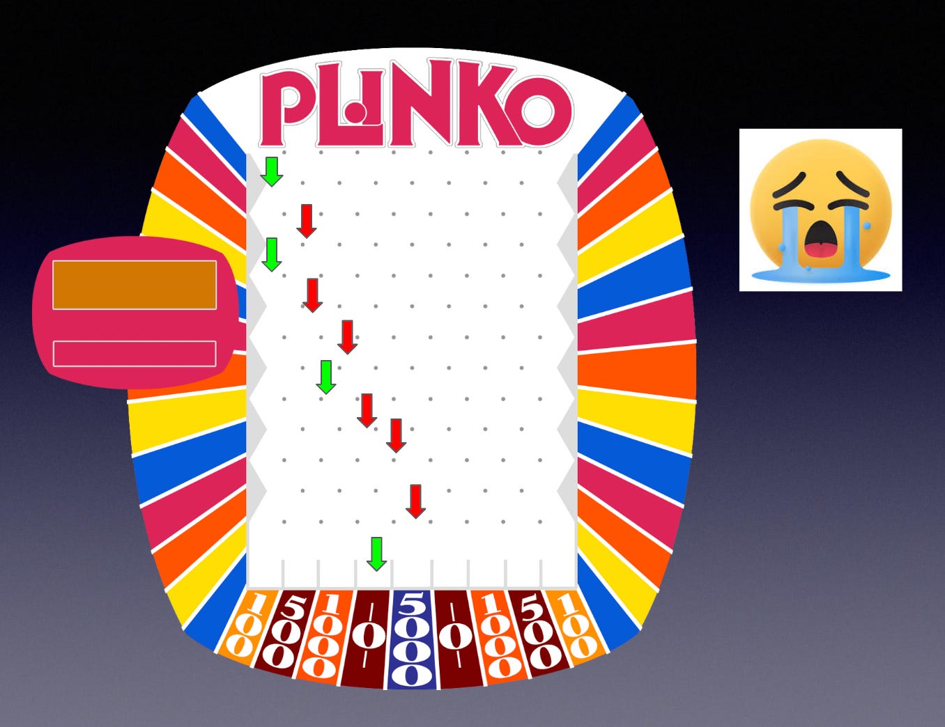 Let’s say you were chosen as a contestant on “The Price is Right” and have a chance to win a big payout by playing the game “Plinko”. Plinko is a game in which a contestant stands at the top of the stairs looking down at a board with varying levels of cash prizes.